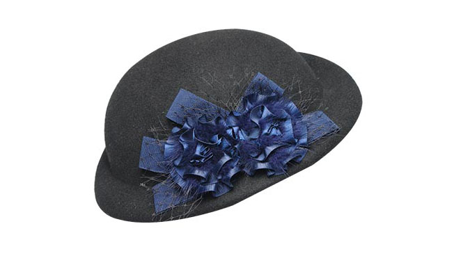 100%純羊毛的帽子, 凹凸有致的時(shí)尚造型,織帶花團(tuán)錦簇的裝飾,將帽子襯托得十分優(yōu)雅